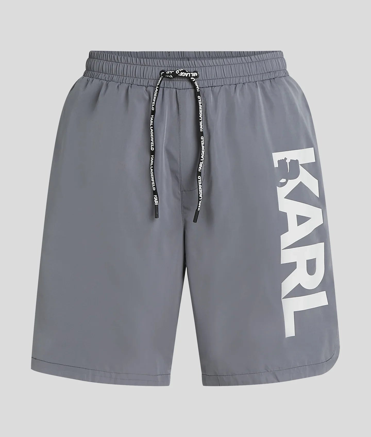 Elevate poolside style with these classic board shorts, featuring a drawcord waist, practical pockets, and accented by the unmistakable KARL logo.