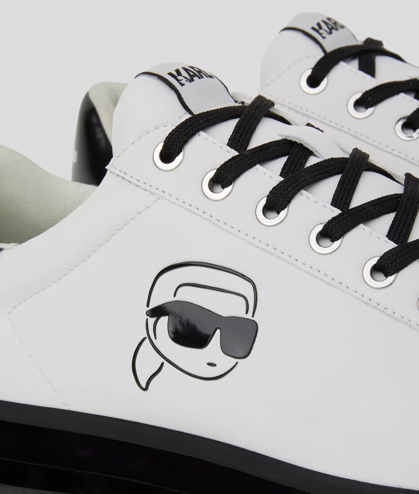 Introducing the IKON NFT Kapri sneakers, where playful design meets modern flair. Featuring a lace-up design and a high-shine bubble sole, these sneakers showcase a distinctive heel counter adorned with the unmistakable KARL LAGERFELD logo. The side art adds a unique touch, making them a standout choice for any wardrobe.