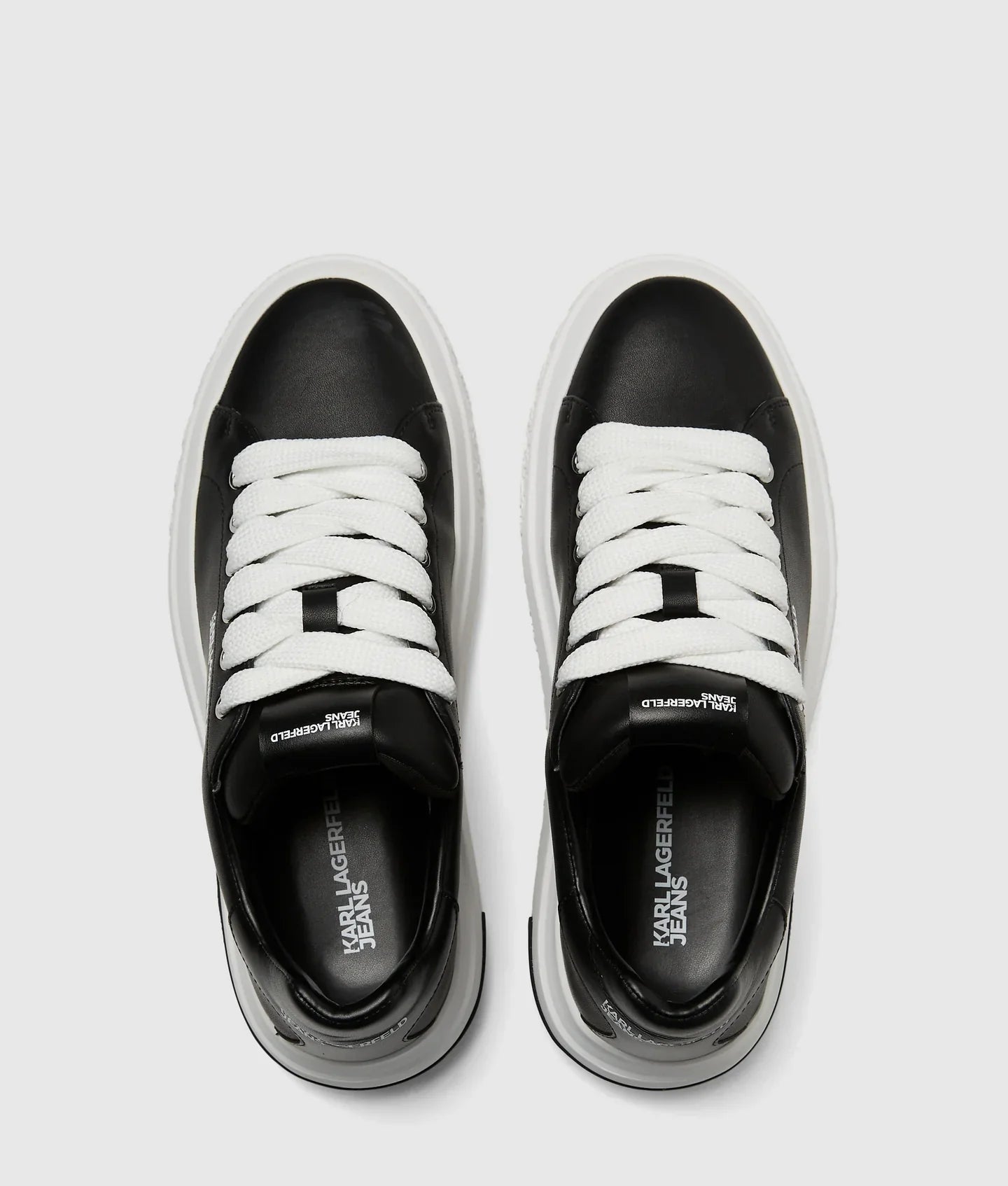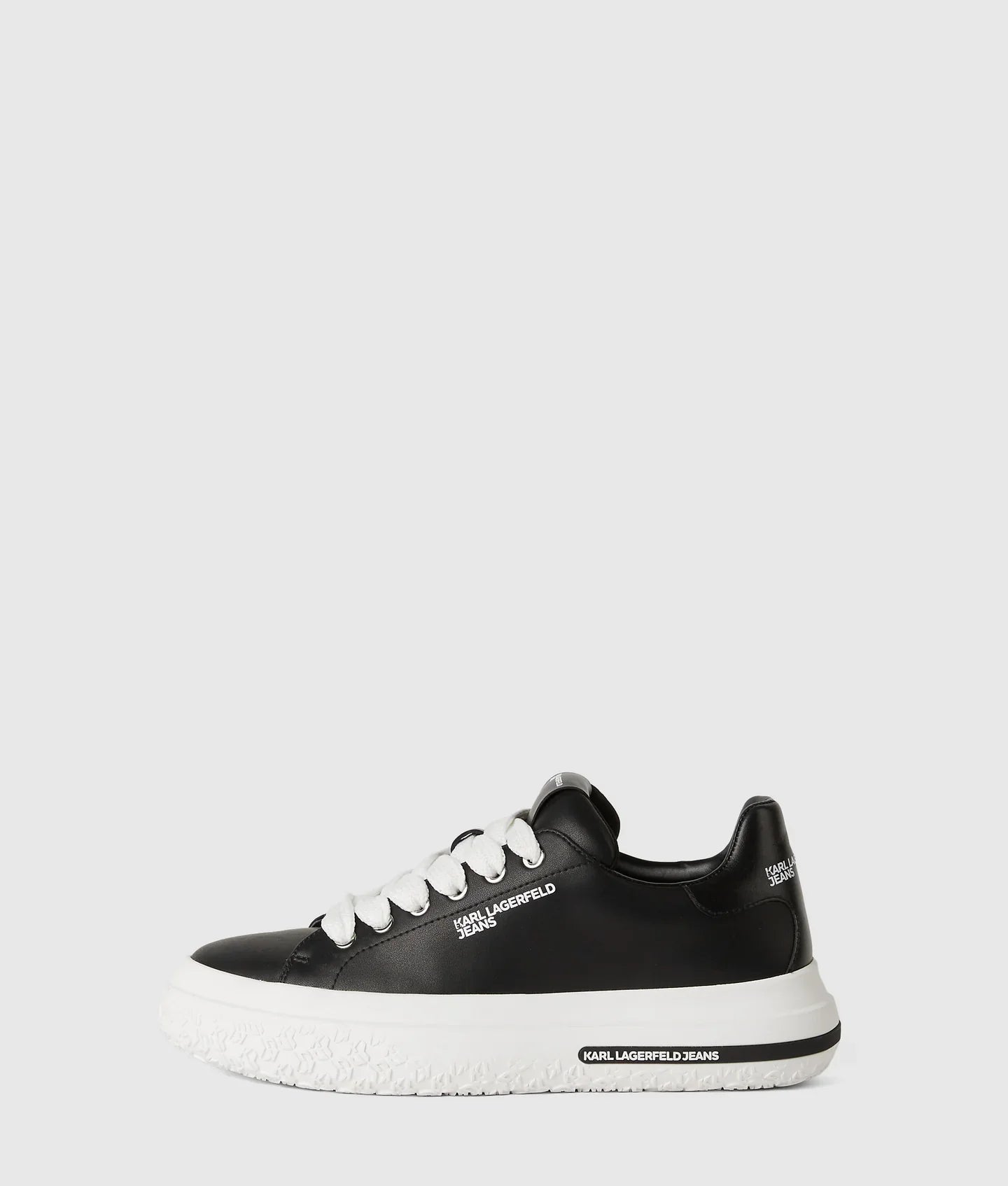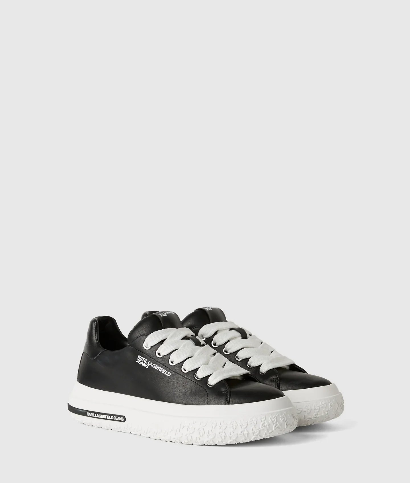 Crafted with a nappa upper, KARL LAGERFELD JEANS sneakers boast wide contrast laces, EVA soles, and distinct logo detailing.