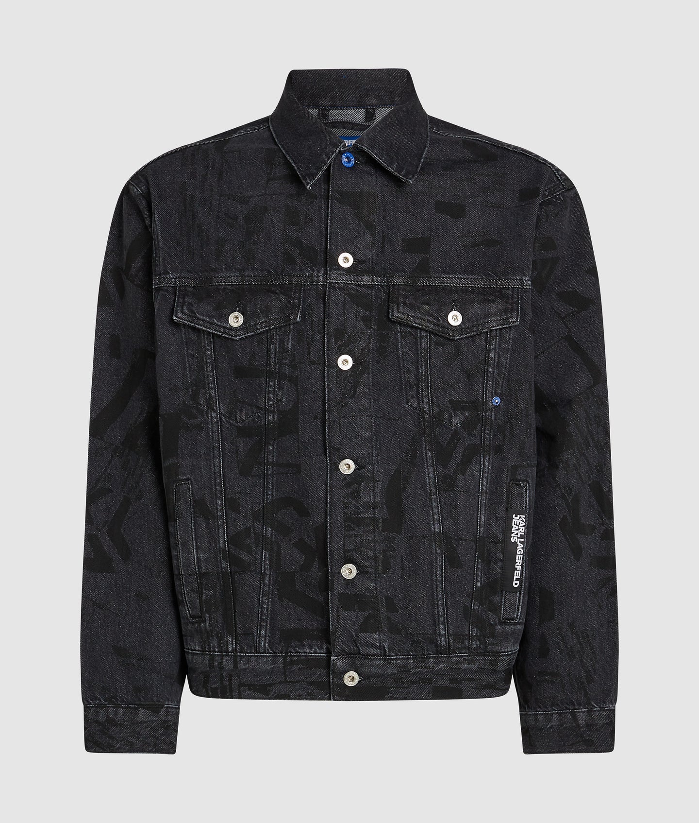 All-over attitude. This monogram-print denim jacket pairs a relaxed fit with branded hardware, bringing edge and ease to your everyday uniform.