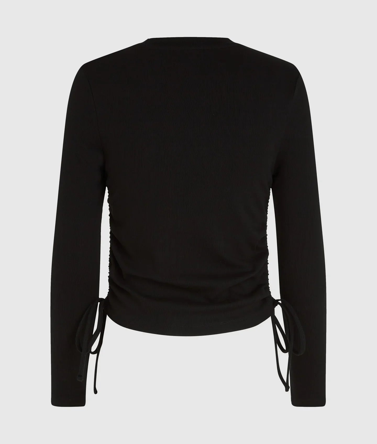 Soft organic cotton blend shapes this ruched ribbed top with subtle drawcords that sculpt the silhouette. The classic crew neck and delicate logo embroidery add effortless polish.